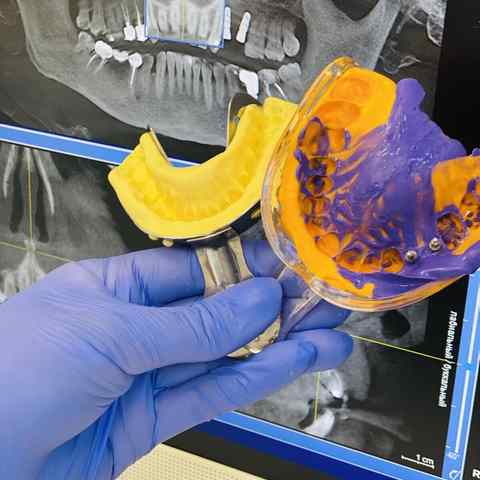 - протезирование на имплантатах — проводится несъемными, условносъемными и съемными конструкциями. Вид имплантации зубов, материал, метод фиксации импланта выбирается врачом-стоматологом совместно с пациентом на консультации с анализом панорамного снимка зубов и личном осмотре пациента